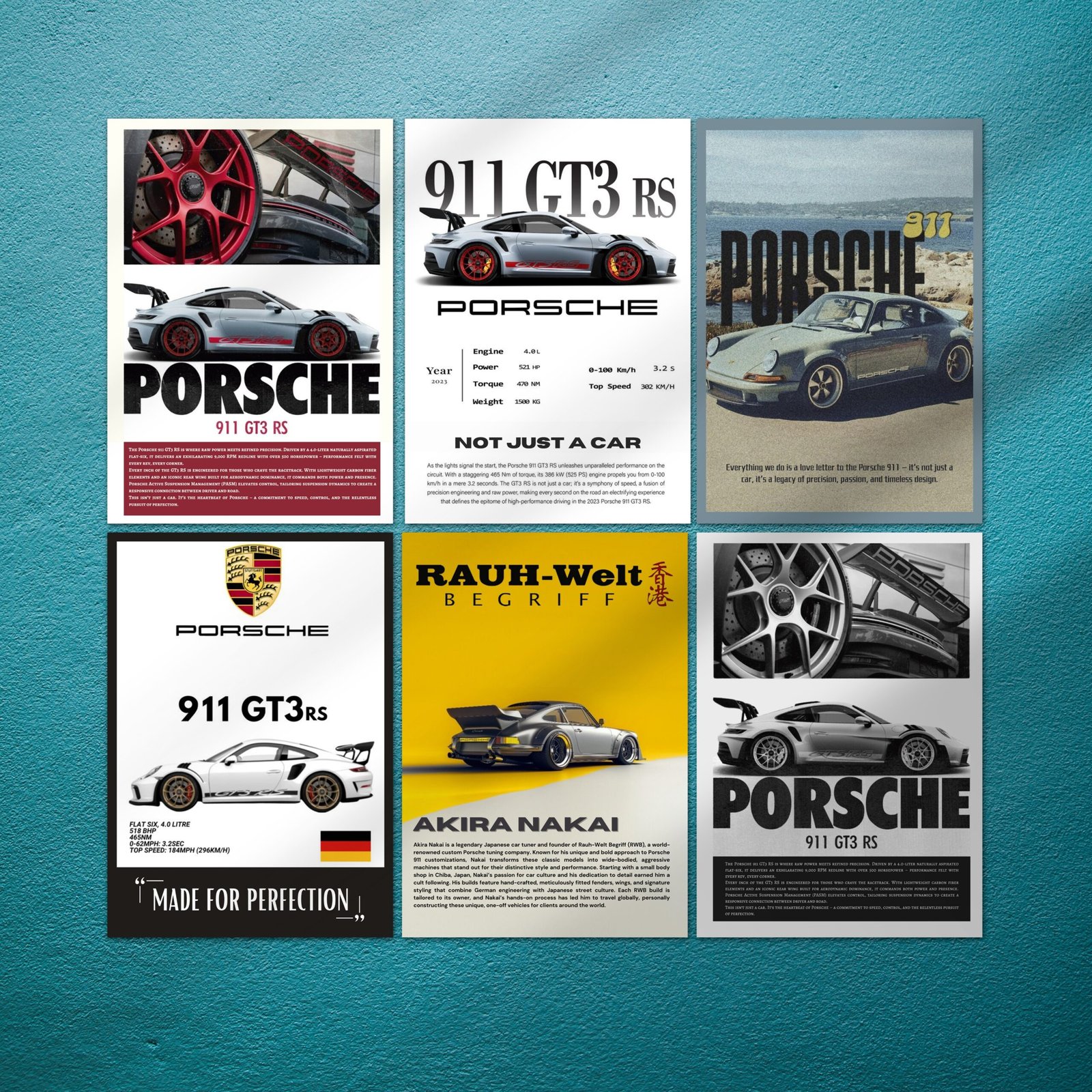 Gift them to a friend, display them in your workspace, or use them to personalize your car-themed décor — this 12-set Porsche poster collection is built to impress, inspire, and last.