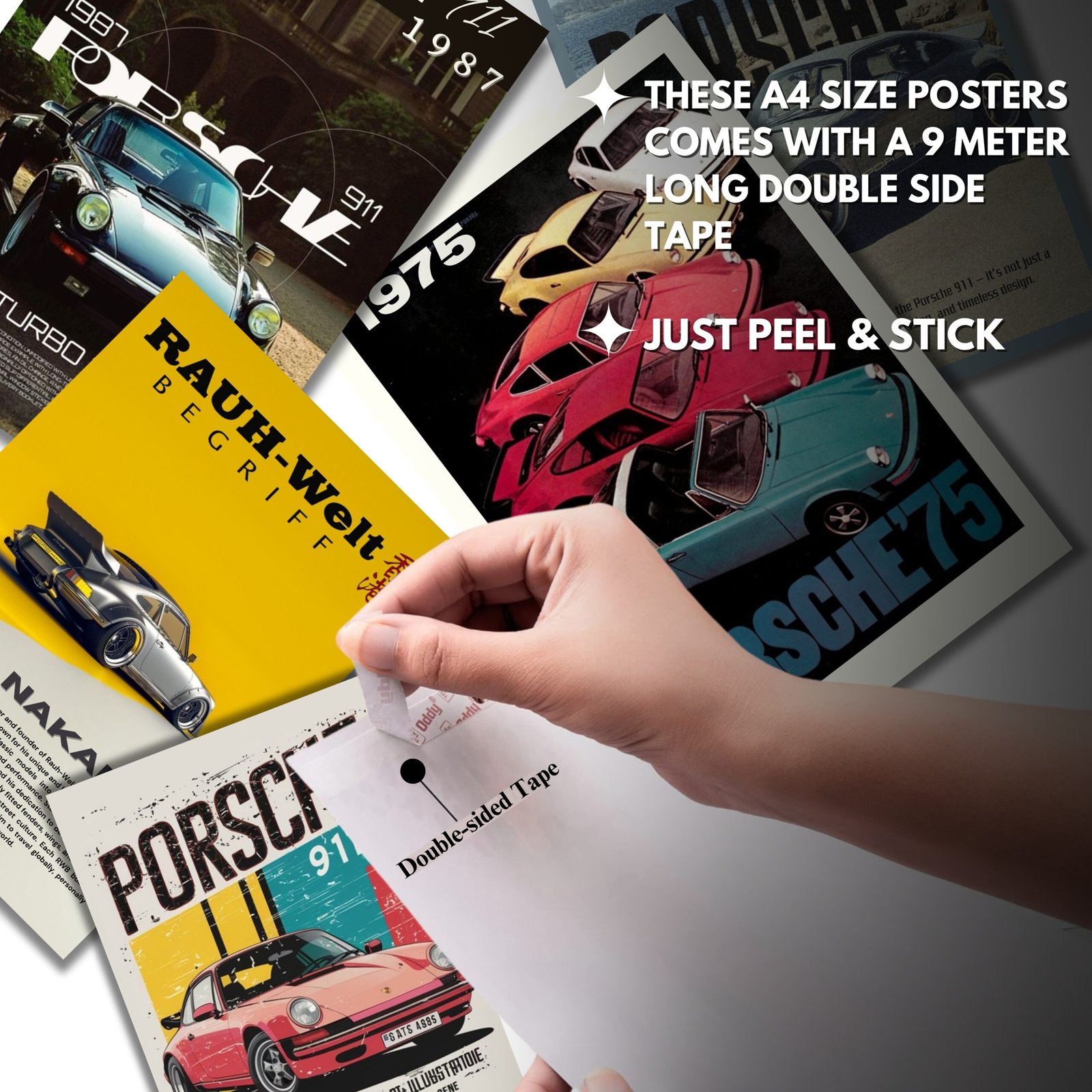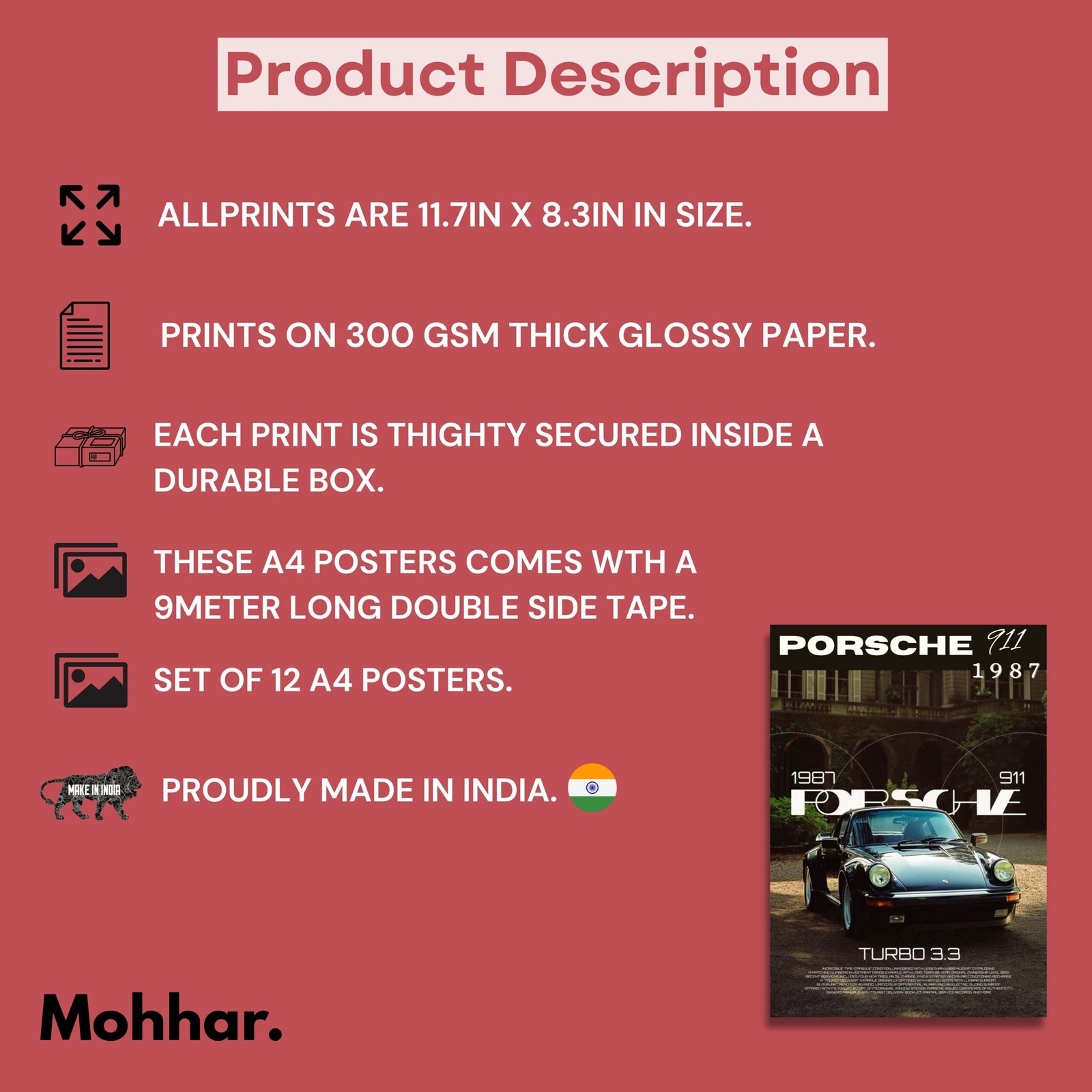 Each poster is crafted in A4 size using 300 GSM premium hard paper for a durable and professional look. glare-free finish. You can easily stick them using the included double-sided tape or frame them for a sleek, gallery-style display.